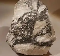La discrasita es un mineral del grupo II (sulfuros) según la clasificación de Strunz. Es una de las menas de plata menos frecuentes. Se halla junto con minerales del arsénico y del antimonio. Puede aparecer con una pátina de color gris a marrón.