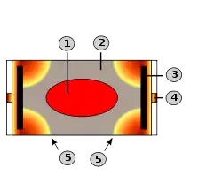 En la radiación por implosión, la ráfaga de rayos-X que proviene de una primaria explotando es capturada y contenida dentro un canal de radiación con murallas opacas que rodea a los componentes de energía nuclear de la secundaria. La radiación rápidamente convierte a la espuma plástica, que estaba llenando el canal, en un plasma que es en gran parte transparente a los rayos-X, y la radiación es absorbida en las capas más exteriores del empujador/traba que rodea al secundario, que se ablasiona y aplica una masiva fuerza[19] (parecido al interior de un motor de cohete) causando que la cápsula de combustible de fusión implosione en forma similar al pozo de la primaria. A la medida que el secundario implosiona, un "tapón de ignición" (en inglés: spark plug) fisible en su centro se incendia y proporciona calor que permite que el combustible de fusión también se encienda. Las reacciones en cadena de la fisión y de la fusión intercambian neutrones entre sí y mejoran la eficiencia de ambas reacciones. La mayor fuerza implosiva mejora la eficiencia del "tapón de ignición" fisible debido al aumento a través de los neutrones de la fusión, y la explosión de la fusión en sí misma proporciona significativamente mayor potencia explosiva a partir de la secundaria a pesar de que a menudo no es mucho más grande que la primaria.