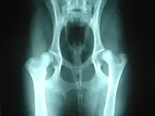 La displasia de cadera es una enfermedad ósea, hereditaria, no congénita puesto que no se manifiesta en el nacimiento, sino que se desarrolla con el crecimiento de la pelvis y puede aparecer a partir de los cuatro o cinco meses de edad, y además es degenerativa. Es producida por una malformación de la articulación coxofemoral (unión del acetábulo de la cadera con la cabeza femoral), que puede producir dolor e incluso cojera en el animal que la padece, y dificultad para sentarse o subir escaleras. La edad de presentación varía entre los cuatro meses en los casos más extremos y doce meses. Sin embargo, antes de los cuatro meses se puede realizar el test de PennHip donde se podrá precisar las probabilidades para que un cachorro desarrolle displasia, pero nunca diagnosticarla ya que no es hasta los cuatro meses cuando hay un desarrollo suficiente de las mismas. Los casos de displasia de cadera, por lo general, suelen ser bilaterales.