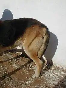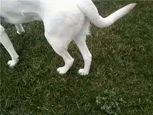 - Ganancia de masa muscular en los hombros producida porque el perro trata de descargar el peso de sus patas traseras sobrecargando las delanteras.