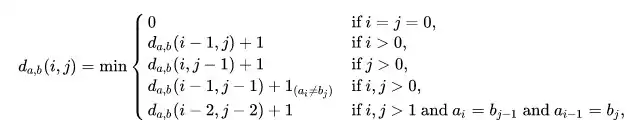 Ejemplo de rellenado de una casilla de la matriz de distancia Damerau-Levensthein