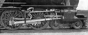 Mecanismo de distribución tipo Walschaerts en una locomotora de vapor.