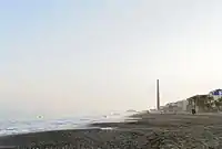 La playa de la Misericordia, se encuentra situada entre las playas de Huelin y la de Sacaba. Se trata de una playa urbana de arena oscura que cuenta con una longitud total de 2.000 metros y una anchura media de 30 metros. La Misericordia es la playa de Málaga más larga y junto a las de El Palo y La Malagueta, la más famosa de la capital. Es frecuentada sobre todo por los jóvenes y dispone de servicios de de papeleras, duchas, recogida de residuos, alquiler de sombrillas y hamacas, etc. Esta playa destaca por la chimenea de los Guindos, una antigua chimenea industrial (hoy aislada y restaurada) que la preside y que da un aspecto característico al litoral occidental de la bahía de Málaga y a todo el distrito. Es una de las playas donde se aprecia la llegada de la Ola del Melillero.
