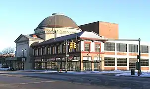 El Teatro Bonstelle de la Universidad Estatal de Wayne está ubicado en 3424 Woodward en el extremo norte del distrito; originalmente era el Templo Beth El. A principios del siglo XX, el rabino Leo M. Franklin del Templo Beth El de Detroit lideró el impulso para la construcción de un nuevo templo. [6] Contrató al arquitecto Albert Kahn, miembro de la congregación, para diseñar el edificio. [6] La inauguración comenzó el 25 de noviembre de 1901 y la piedra angular ceremonial se colocó el 23 de abril de 1902. [6] Los primeros servicios se llevaron a cabo en la capilla el 24 de enero de 1903 y la dedicación formal se llevó a cabo el 18 y 19 de septiembre del mismo año. [6]