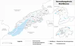 El distrito está compuesto con las comunas del antiguo distrito de Biel-Bienne, y algunas comunas de los distritos de Büren y Nidau. Además incluye una parte del lago de Bienne.