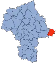 El distrito se subdivide en seis gminas (una urbana-rural y cinco rurales). Estos se enumeran en la siguiente tabla, en orden descendente de población.