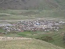 ![]() Vista de la plaza Mayor de Antauta, la capital distrital, con el palacio Municipal al fondo.