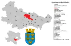 ![]() Área del Distrito dentro del estado de Baja Austria | ||