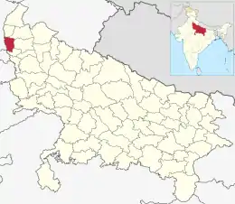 ![]() Ubicación del distrito de Bagpat en Uttar Pradesh. | ||