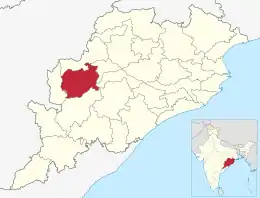 ![]() Ubicación del distrito de Balangir en Orissa. | ||