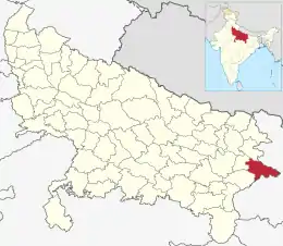 ![]() Ubicación del distrito de Ballia en Uttar Pradesh. | ||