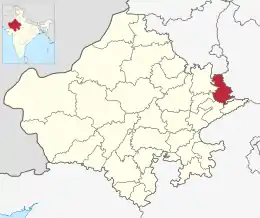 ![]() Ubicación del distrito de Bharatpur en Rajastán. | ||