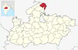 ![]() Ubicación del distrito de Bhind en Madhya Pradesh. | ||