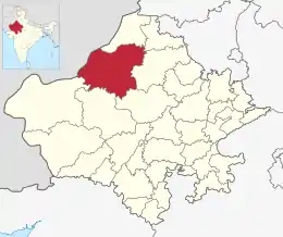 ![]() Ubicación del distrito de Bikaner en Rajastán. | ||