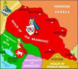 El reino de Branković estaba localizado en la mayor parte de la actual Kosovo. Vuk también tenía tierra en Rascia (incluyendo la antigua capital serbia Ras) y tierras en Polimlje en el norte de la actual Montenegro. Después de la muerte de Đurađ I Balšić, Vuk capturó sus ciudades de Prizren y Peć y la zona del Metohija.[1] Las ciudades más importantes en el reino de Vuk eran Priština, Prizren, Peć, Skopie y Ras, así como las ricas colonias mineras de Trepča, Janjevo, Gluhavica y otros.[2]