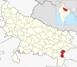 ![]() Ubicación del distrito de Chandauli en Uttar Pradesh. | ||