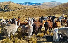 En las tierras altas, los cultivos se cultivan en una variedad de campos inclinados y planos. En su mayoría son plantas de tubérculos, aproximadamente 40 especies de papas (Olluco, Maswa y Añu, entre otras). Los cultivos secundarios incluyen quinua, trigo, frijoles, tarwi y cebada. El terreno accidentado hace que el uso de la agricultura mecanizada sea imposible en muchas áreas, por lo que los campos son tradicionalmente arados por el trabajo humano solo o con la ayuda de caballos. La harina generada por parte de la cosecha se usa en una bebida de desayuno endulzada tradicional, similar a la avena, que a veces se mezcla con café. Una bebida popular producida localmente es Chicha, una cerveza de maíz dulce.
