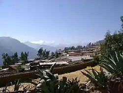 ![]() Chiquián, la capital distrital, con la cordillera Huayhuash de fondo.