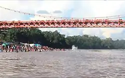![]() Vista del puente Palcazu sobre el río homónimo que une las dos partes de Ciudad Constitución, la capital distrital.