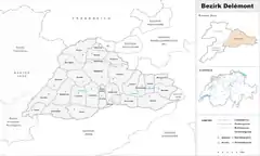 - Delémont (Bailía, Distrito) en alemán, francés o italiano en el Diccionario histórico de Suiza.