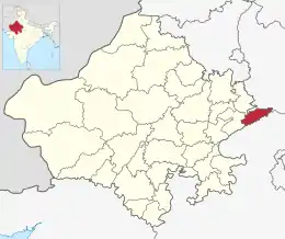 ![]() Ubicación del distrito de Dholpur en Rajastán. | ||