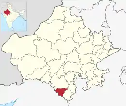 ![]() Ubicación del distrito de Dungarpur en Rajastán. | ||