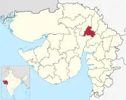![]() Ubicación del distrito de Gandhinagar en Guyarat. | ||
