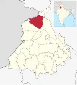 ![]() Ubicación del distrito de Gurdaspur en Punyab. | ||
