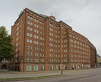 Hans y Oskar Gerson diseñaron otro edificio en el barrio, el Meßberghof. [2] : 30 [5] : 183 [8] : 117 [7] En cooperación con Fritz Wischer, Max Bach construyó el edificio de oficinas "Hubertushaus". [2] : 31 [5] : 185 Otros dos edificios, el Altstädter Hof y el Bartholomayhaus fueron diseñados por Rudolf Klophaus. [2] : 32 [8] : 117, 137 El frontón ficticio de Bartholomayhaus, una reminiscencia de las antiguas casas de pueblo hanseáticas, ya se consideraba obsoleto en el momento de su construcción. Las esculturas de piedra arenisca del Altstädter Hof también fueron diseñadas por Richard Kuöhl, [2] : 32 que también diseñó la escultura de Hermes, más grande que la vida [5] : 185 en la entrada principal del "Mohlenhof", [2] : 31 uno de los pocos edificios de oficinas que sobrevivió a la Segunda Guerra Mundial casi intacto. En la Pressehaus (casa de la prensa), hoy Helmut-Schmidt-Haus, otra obra de Klophaus, se instalaron varias editoriales.[9]