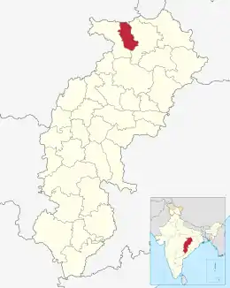 ![]() Ubicación del distrito de Koriya en Chhattisgarh. | ||