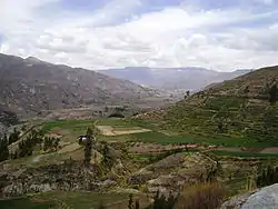 El pueblo de Lari se sitúa en la margen derecha del cañón del Colca, a 3 405 msnm.