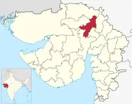 ![]() Ubicación del distrito de Mahesana en Guyarat. | ||
