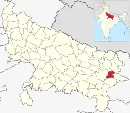 ![]() Ubicación del distrito de Mau en Uttar Pradesh. | ||
