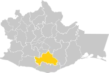 ![]() Ubicación del distrito de Miahuatlán en el estado de Oaxaca. | ||