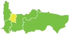 ![]() Gobernación de Hama con el Distrito de Muhrada en amarillo. | ||