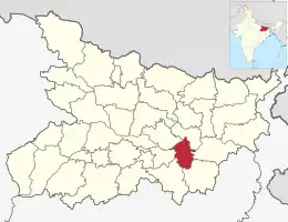 ![]() Ubicación del distrito de Munger en Bihar. | ||