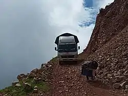 ![]() Un deslizamiento de rocas en la trocha hacia la localidad de Rimaymarca.
