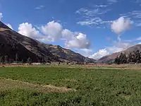 ![]() Vista del valle del río Upamayo con Pampas, la capital distrital, al fondo.