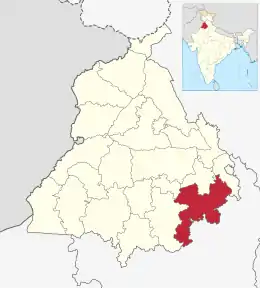 ![]() Ubicación del distrito de Patiala en Punyab. | ||