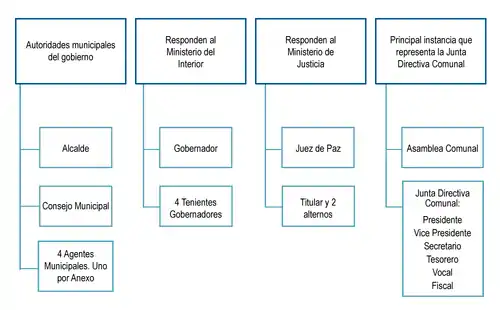 El resto de autoridades e instituciones del organigrama fuera de la Junta Comunal, corresponden al gobierno distrital:
