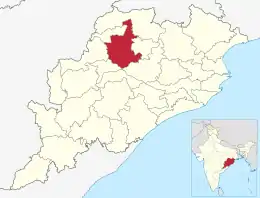 ![]() Ubicación del distrito de Sambalpur en Orissa. | ||
