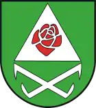 El triángulo encima a la izquierda en el escudo de armas, simboliza las colinas del mineral usado en la industria de explotación minera del distrito. Dentro del triángulo está una rosa, que simboliza la famosa rosaleda de la ciudad Sangerhausen. Debajo del triángulo están dos ganchos, que se toman del escudo de armas de la ciudad de Sangerhausen. |