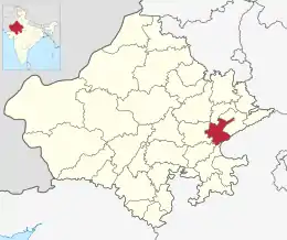 ![]() Ubicación del distrito de Sawai Madhopur en Rajastán. | ||