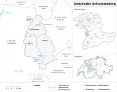 El distrito de Schwarzenburg estaba situado entre la región del Mittelland (meseta) y del Oberland bernés (Berner Oberland en alemán). Limita al noreste con el distrito de Berna, al este con el de Seftigen, al sures con el de Niedersimmental, y al oeste con el de Sense (FR).