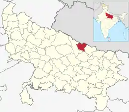 ![]() Ubicación del distrito de Shravasti en Uttar Pradesh. | ||