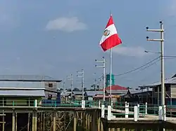 ![]() Vista de Islandia, la capital distrital, con sus tradicionales calles y casas sobre pilotes.