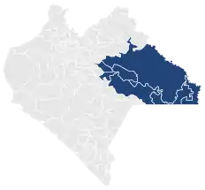 El territorio del Tercer Distrito es el extremo oriental del estado, formando parte de él la gran mayoría de la Selva Lacandona, lo forman los municipios de Altamirano, Benemérito de las Américas, Chanal, Las Margaritas, Maravilla Tenejapa, Marqués de Comillas, Ocosingo y Oxchuc.[1]