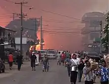 Una tienda de venta privada de teléfonos móviles y de publicidad para Tonfön (parte del Shoreline Group of Companies, a la vez, por la familia real) estaba al lado. Los manifestantes también atacaron e incendiaron la oficina principal del Grupo de Empresas del litoral, que se encuentra a un kilómetro de distancia del distrito central de los negocios menores. Varias de las tiendas más grandes de China fueron objeto de saqueos e incendios. Otras tiendas, incluyendo una propiedad de personas de origen indio, fueron quemadas también, pero no está claro si fue intencional o se incendió de los edificios circundantes.