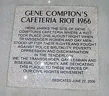 Los disturbios de la cafetería Compton's ocurrieron en agosto de 1966 en el distrito de Tenderloin de San Francisco. El incidente fue la primera revuelta transgénero registrada en la historia de los Estados Unidos, adelantándose tres años a los famosos disturbios de Stonewall de 1969 en Nueva York.