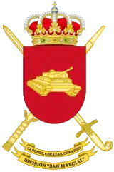 La División «San Marcial» es también heredera de una serie de unidades de carros y acorazadas que comienza en 1922, cuando se creó la primera Batería de Carros de Asalto de Artillería. En 1931 se crearon dos Regimientos de Carros, el n.º 1 en Madrid y el n.º 2 en Zaragoza.[9] Estos regimientos fueron el embrión de las fuerzas acorazadas de los dos bandos de la Guerra Civil Española. En el bando republicano se formó en 1936 la primera gran unidad acorazada española, la Brigada de Carros de Combate, y en 1937 la primera división acorazada española, la División de Ingenios Blindados.[10] El bando sublevado solo formó pequeñas unidades de carros, no mayores que una agrupación.[9] Después de la guerra el victorioso régimen franquista ordenó la creación de cinco Regimientos de Carros de Combate, equipados tanto con los carros que los aliados italianos y alemanes habían suministrado al bando sublevado, como con los carros soviéticos capturados durante y tras acabar la guerra. En 1943 dos de estos regimientos –el n.º 1 y n.º 2, luego llamados «Alcázar de Toledo» n.º 61 y «Brunete» n.º 62, respectivamente– fueron encuadrados en la entonces creada División Acorazada n.º 1,[11] que en 1961 pasaría a ser llamada División Acorazada «Brunete».[12] La división fue reorganizada en 1965, pasando a estar formada por dos brigadas –una acorazada y otra mecanizada– y otras unidades divisionarias.[13] En 1996 la división incorporó otra brigada mecanizada y fue renombrada División Mecanizada «Brunete» n.º 1. En 2006 la división fue reemplazada por el Mando de las Fuerzas Pesadas, al que le fue añadido una brigada y un regimiento de caballería.[2] Con la reforma iniciada en 2015 se recupera la estructura divisionaria, ahora con la denominación División «San Marcial», con la nueva división encuadrando cuatro brigadas orgánicas polivalentes «de cadenas», de composición similar, aunque no idéntica.